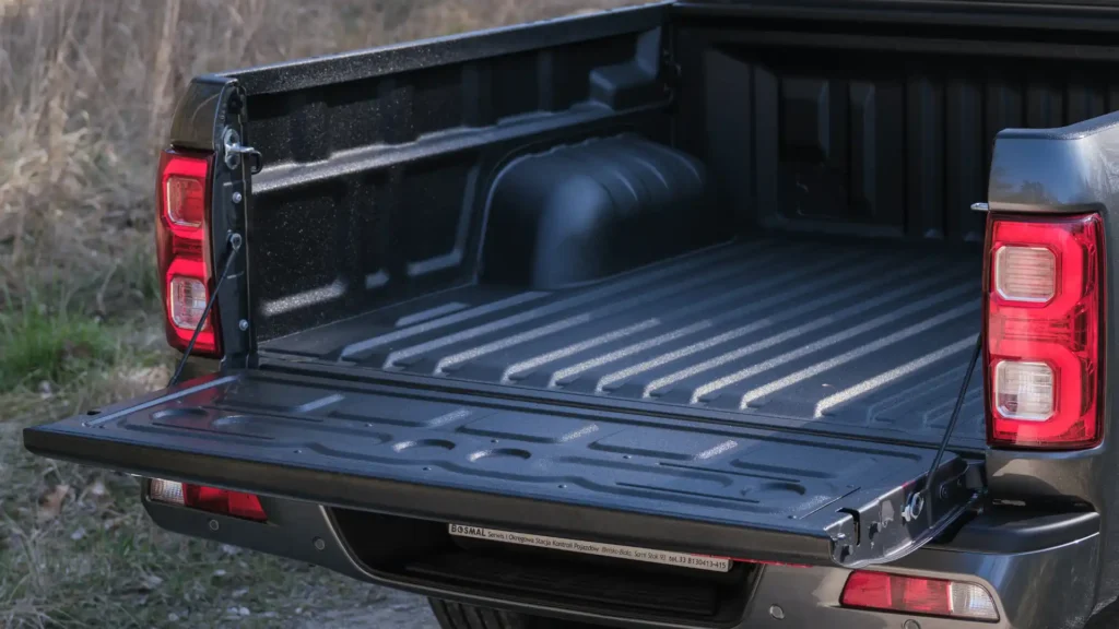 Skrzynia ładunkowa JAC T8 Pro została zabezpieczona specjalną powłoką, która chroni ją przed korozją oraz uszkodzeniami mechanicznymi. Zapewnia to długotrwałą wytrzymałość i zachowanie estetycznego wyglądu nawet przy częstym, intensywnym użytkowaniu. Dzięki temu pojazd doskonale nadaje się do pracy z ciężkim sprzętem oraz materiałami budowlanymi.